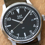 This S.U.F watch comes as a full set, with its original box and papers. The watch is in like new condition. It has perfect mechanical functionality.