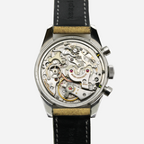 The Heuer Carrera was launched in 1963, soon after the Autavia making it the second named watch in the Heuer line-up. The Carrera 2447 has a simple three register dial with inner chapter ring and elegant 36mm diameter case housing a Valjoux 72 movement.This particular piece being a 2447N, N is for noir.