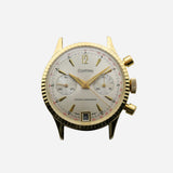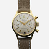Cal. 189 is one of a family of cam switching chronograph movements produced by Landeron. It is closely related to the preceding Cal. 48 and contemporary Cal. 148 but uses a conventional start/stop button rather than combining stop and reset and adds a date complication. This Dufonte by Lucien Piccard has a beautiful fluted bezel which looks great on the wrist.
