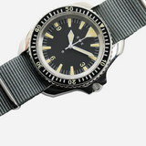 Limited to only 600 pieces this re-issue of the 1980 RN Divers Automatic was originally issued to Royal Navy Clearance Divers, NSN 0552/9237697. This watch actually superseded the Rolex MilSub on the wrists of Royal Navy divers, and its first version, with a self-winding mechanical movement, is far rarer than the Rolex it replaced.