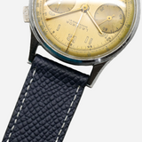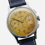 He returned to Paris, looking for employment. He soon realized that there was a tremendous shortage of watches in France and he started to illegally bring watches into France from Switzerland. He soon realized that the profit margin would be greater if he imported watch parts and had the watches assembled in France, hence the brand name Lacorda. At its peak in the 50's the brand had 10% of the French watch market and the business also had the agency for Vulcain.