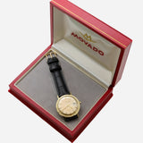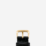 Strap: Leather with gold Movado buckle