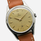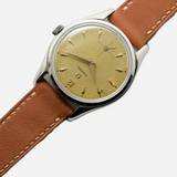 The 2504 was produced between 1946 and 1954 using the manual wound caliber 266. This particular model having a beautiful golden textured dial that really pops in the sunlight.