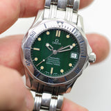 Jacques Mayol was a French diver and the holder of many world records in free diving. He was able to hold his breath for five minutes while motionless and four minutes when active. The Jacques Mayol limited edition Seamaster was released in 1996. The stunning green wave dial sets a perfect background for the stunning tritium applied hour markers with rich patina.