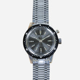 The solid stainless steel case measures in at 38mm and has a black external rotating bezel showing the elapsed time in minutes, perfect for timing your next Olympic pace sprint to the whisky cabinet on a Friday night.