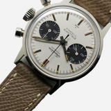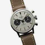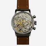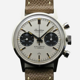 Heuer had a lengthy history as a private-label maker of watches for other companies, this piece being made for Sears. It doesn't have Sears written on the dial, instead, it features 'Tradition'. This was a brand that Heuer made specifically for Sears to sell. This particular piece also has to 'Stellaris' stamped above 6 o'clock which was a Sears in-house brand.